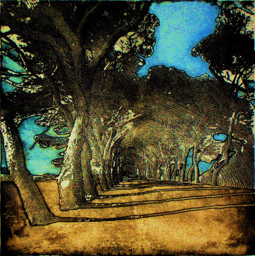 Avenue of pines, South of France, 41cm x 41cm (digital print on cotton or paper)